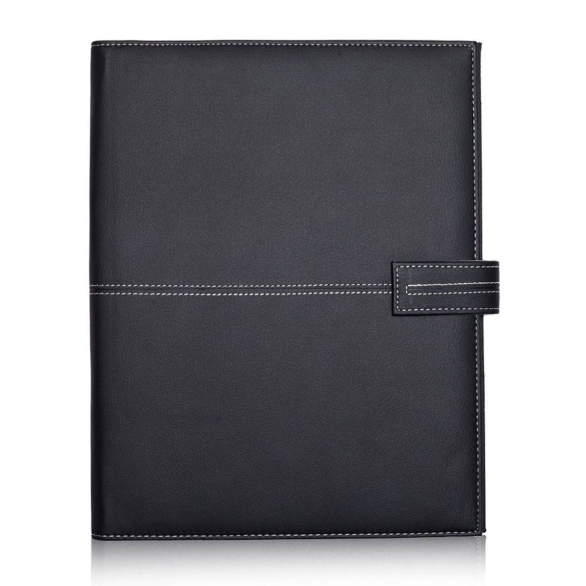 No matter where their workday takes them, they'll be sure to bring your brand along for the ride with the promotional look of these White Stitched PU Leather Portfolios. This promotional opportunity measures 9.5"W x 12.2"H and is made using PU Leather. It features a Button Clasp Closure, 6 USB Loops, 3 Die-cut card pockets, a File Pocket, a pen loop (pen not included), and 20 pages of ruled memo pad. From the meeting room to the classroom, this portfolio is sure to deliver.