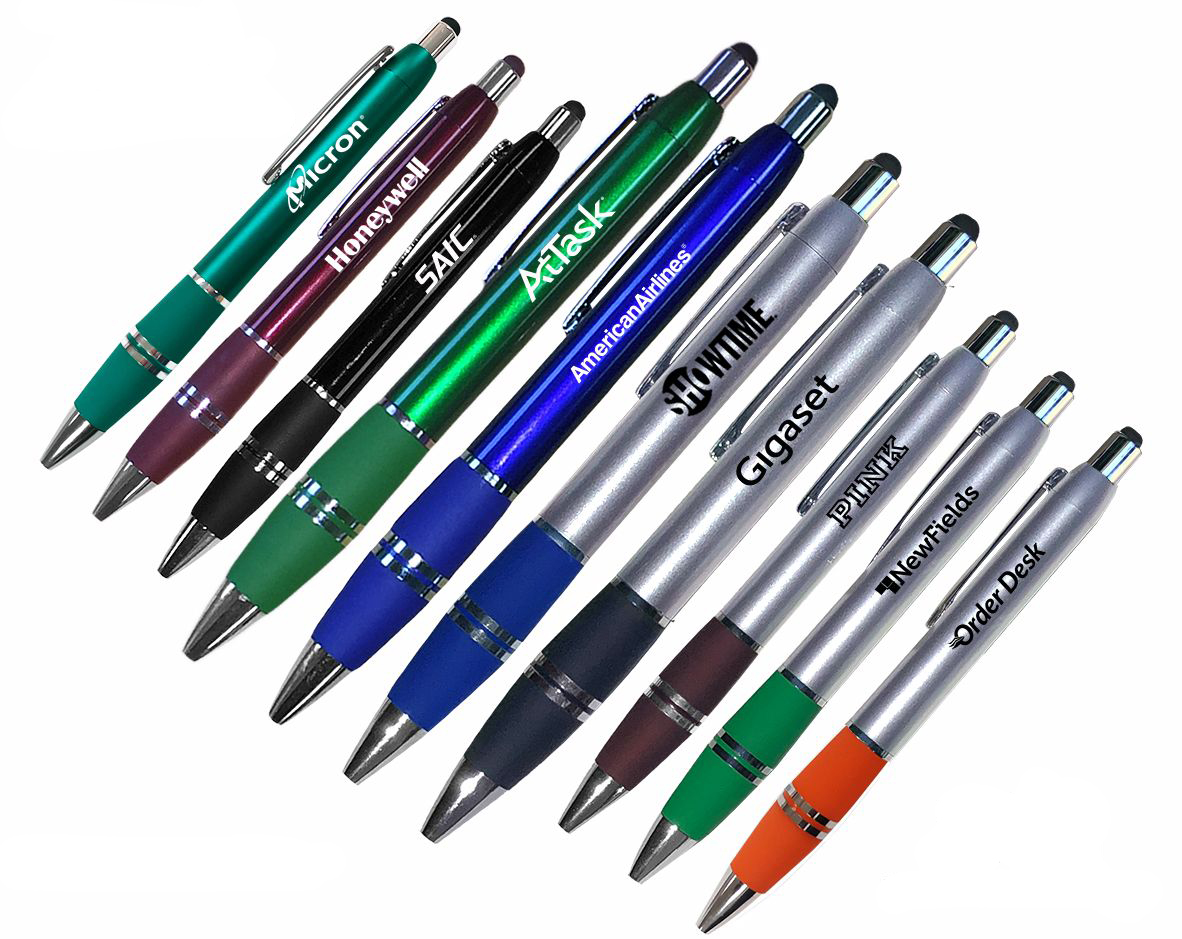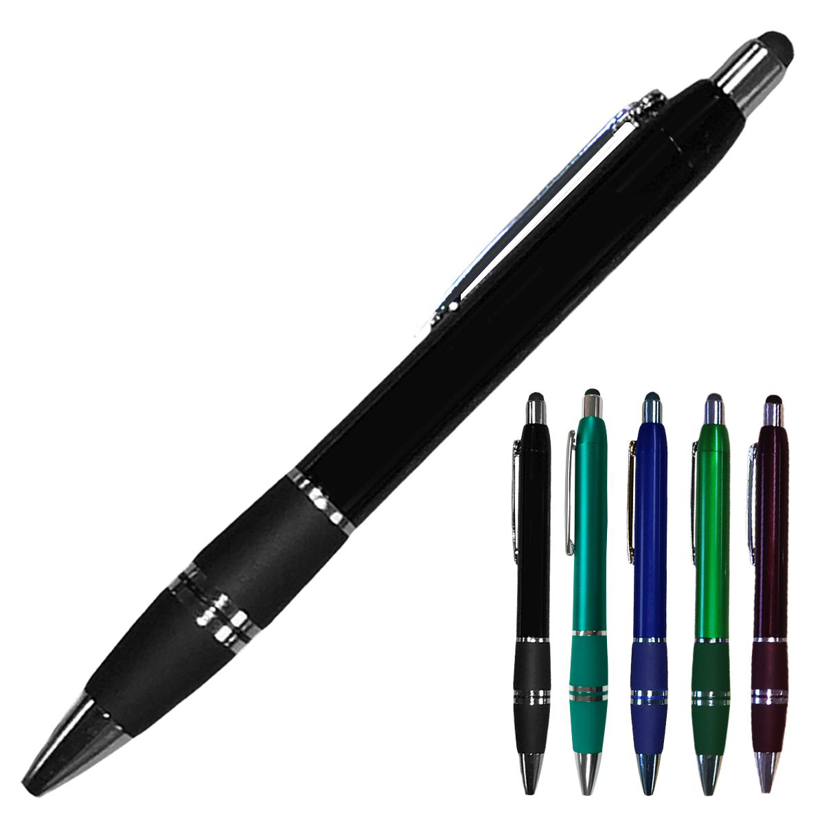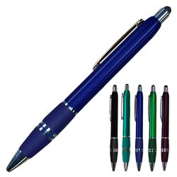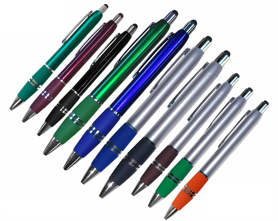 Smartphone and stylus ballpoint pen in fashionable colors. Stylish and elegant, features a soft black tip on top to act as a stylus for use with smart phones. Perfect for trade shows, sales visits and everyday office use. Writes in black ink.