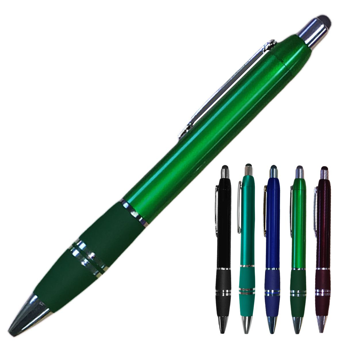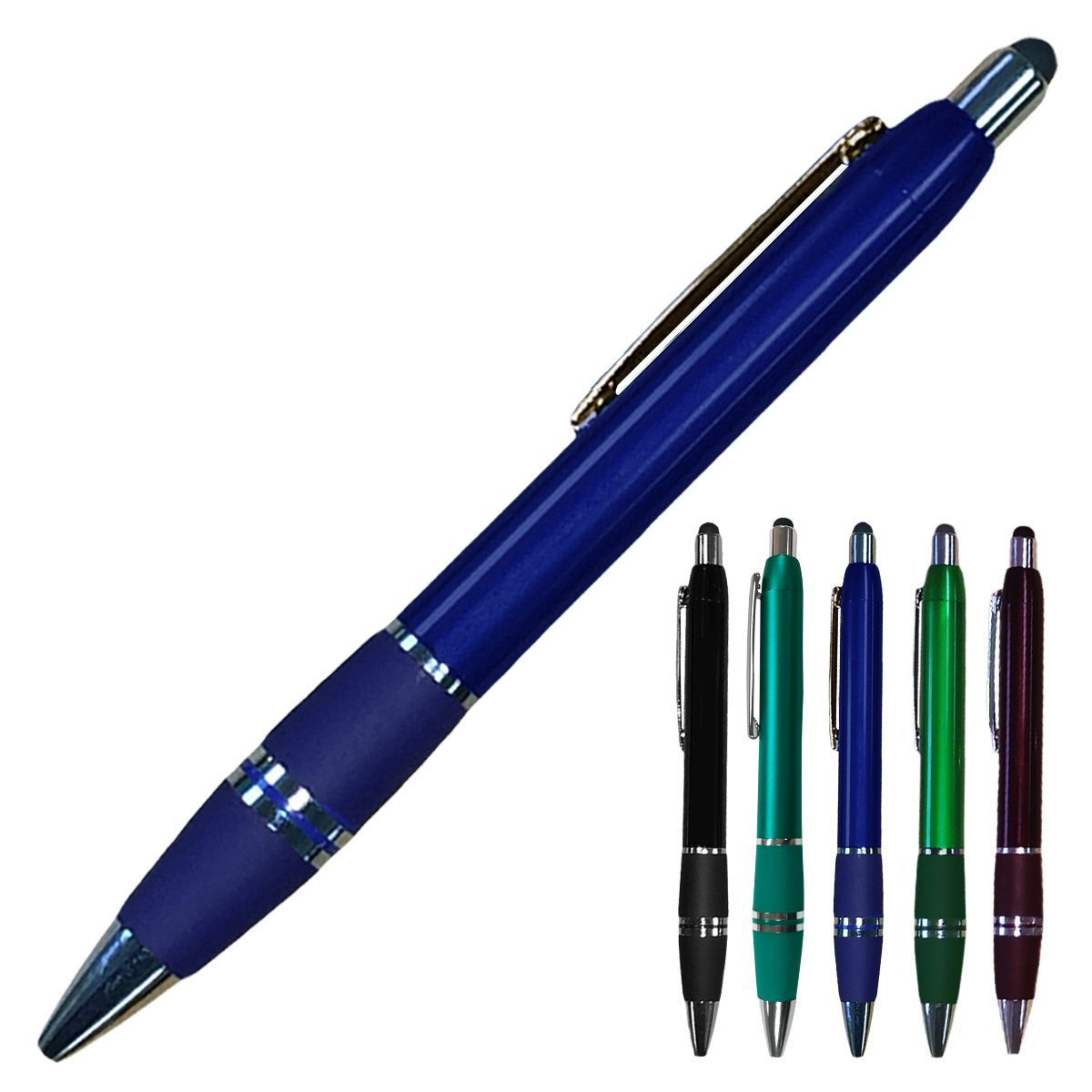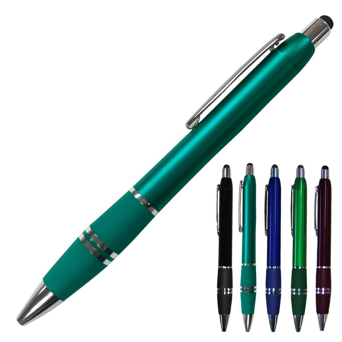 Smartphone and stylus ballpoint pen in fashionable colors. Stylish and elegant, features a soft black tip on top to act as a stylus for use with smart phones. Perfect for trade shows, sales visits and everyday office use. Writes in black ink.